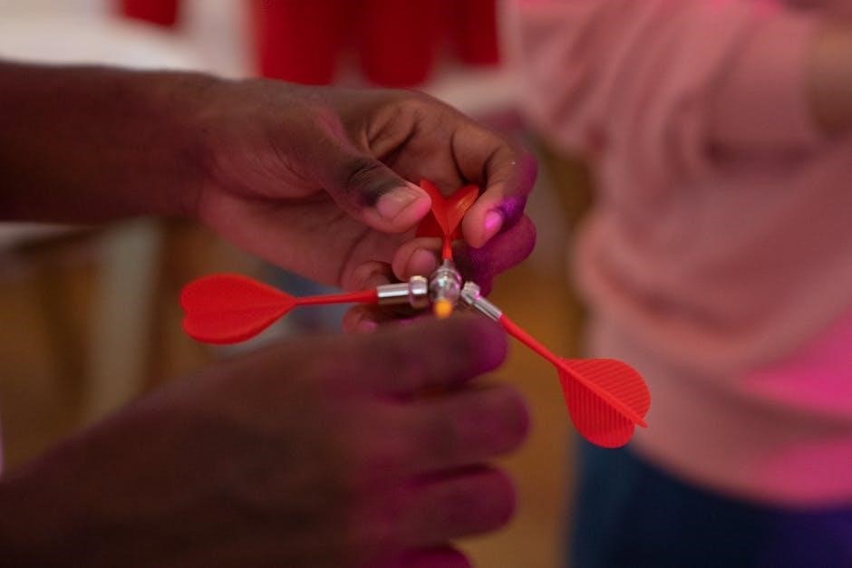 Safety is crucial when using your Halex dartboard․ Always use soft-tip darts to prevent damage and injury․ Ensure the dartboard is securely mounted on a wall to avoid tipping․ Keep children and pets away during play to prevent accidents․ Maintain a clear throwing area, free from obstacles․ Never aim darts at people or animals․ Wear protective eyewear if needed․ Follow the manual’s installation and operation guidelines carefully․ Regularly inspect darts and accessories for damage․ Store darts safely when not in use․ Avoid overreaching or throwing with excessive force․ Ensure proper supervision during gameplay, especially with beginners․ By following these tips, you can enjoy a safe and enjoyable darting experience․